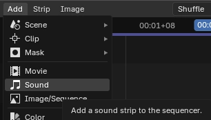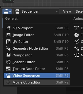Congratz! You have the extension installed and active. Now, for lip syncing, you’ll obviously need an audio file with voice in it. Record something on your PC or download from somewhere on the internet, then at the bottom of your blender screen, click the top-left button and select “Video Sequencer”