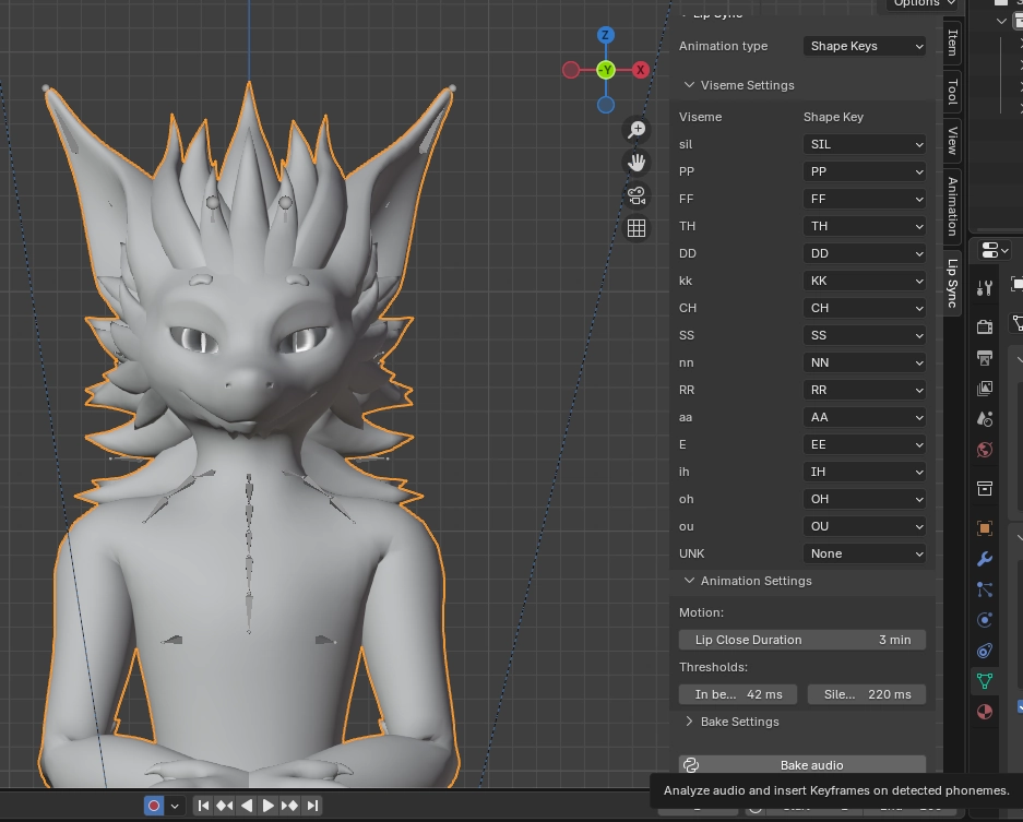 Adjust your thresholds(time to open/close mouth and whatnot) and click “Bake Audio”