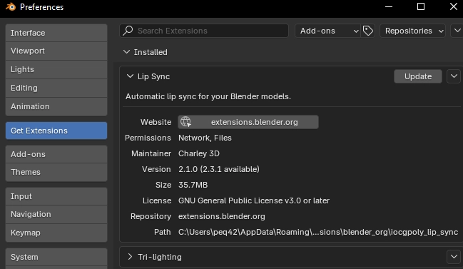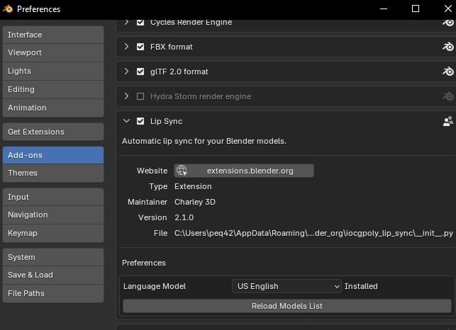 The setup is very simple. First, open blender, go to Edit -> Preferences -> Add-ons and find one called “Lip Sync”. Click install.