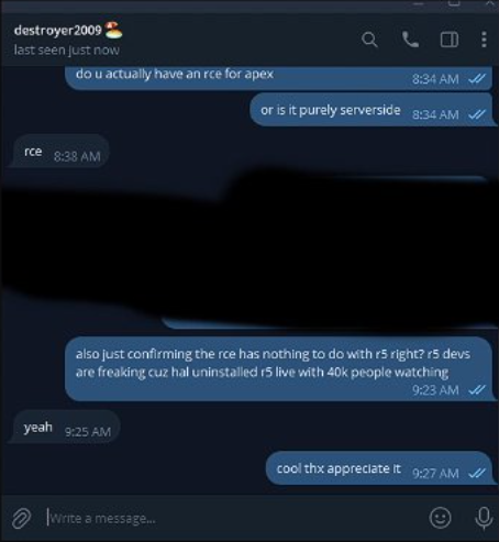 They’ve also seemingly been able to get hold of messages between Destroyer2009 and possibly the developer of R5Reloaded about the situation, confirming that is indeed a RCE but not one caused by the R5. Considering the source of such information though, its good to take all this with a grain of salt: